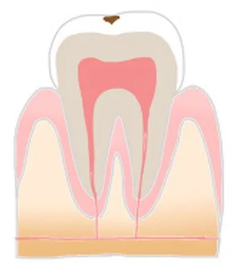 この段階では虫歯がエナメル質のみにとどまっているため痛みはほとんどありませんが、冷たいものがしみることがあります。