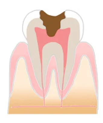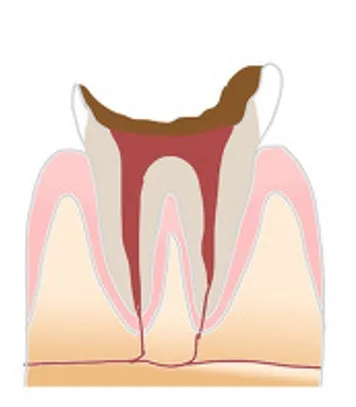 この段階では神経はすでに死んでいることが多く、根っこの部分も虫歯に侵され、感染していますから歯を保存する事が困難になります。