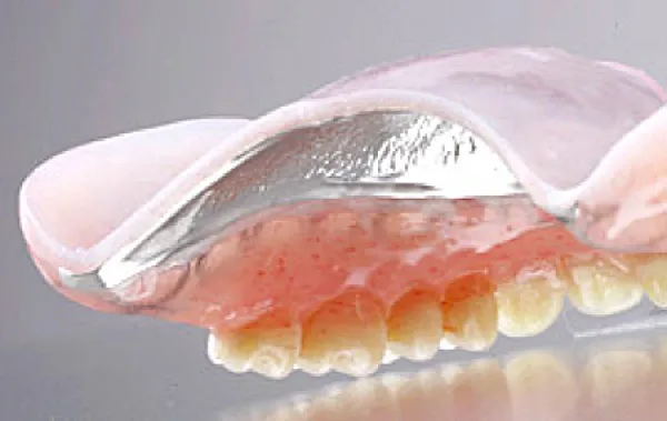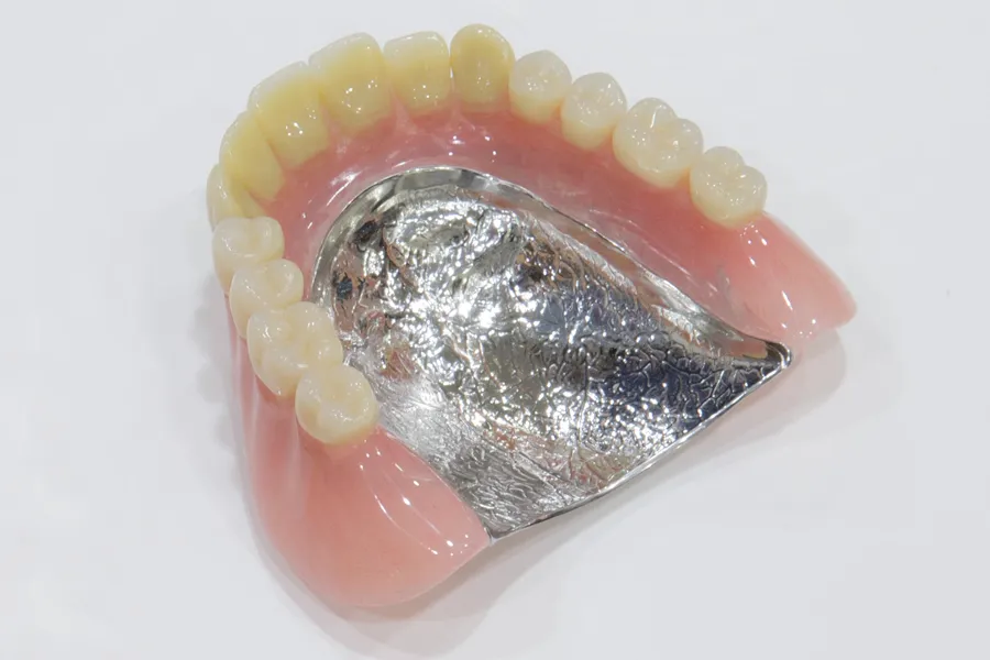歯茎に触れる部分が強度が高い金属で作製された入れ歯です。