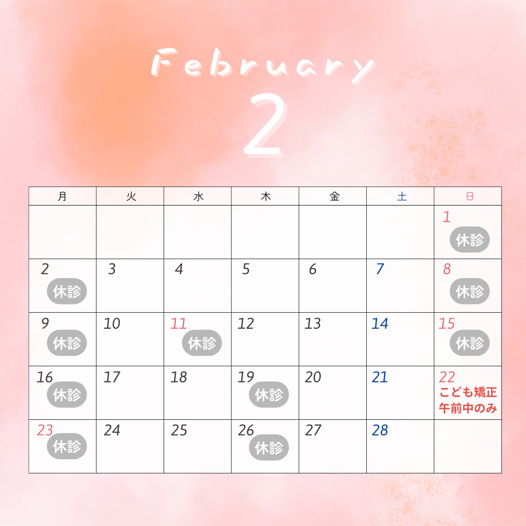 2月の休診日のお知らせ 2026/02/04 徳永歯科こども歯科:https://tokunaga-child-dental.com/ 〒813-0043 福岡市東区名島5-6-28 電話:092-410-6095 交通アクセス 名島駅より徒歩9分 名島小学校すぐ